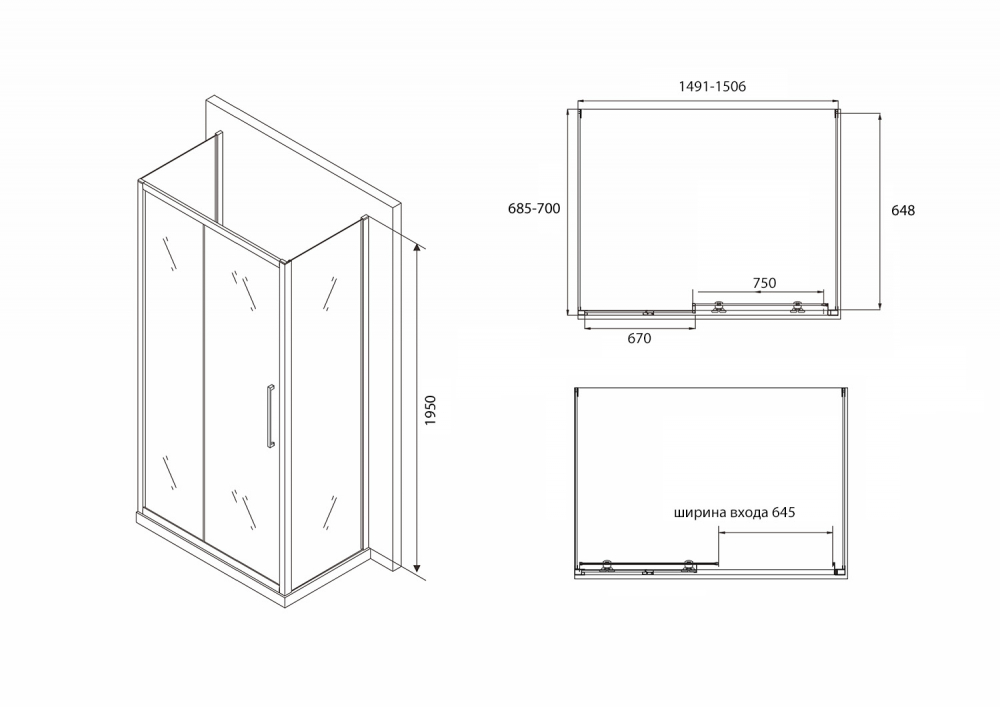 Abber Душевой уголок Schwarzer Diamant AG30150BH-S70B-S70B 150x70