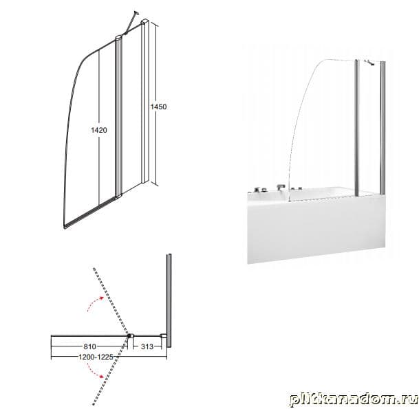Besco Avis Шторка на ванну 2-створки 120х145