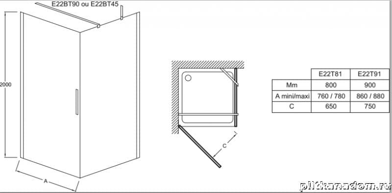 Jacob Delafon Contra E22T91-GA Дверь на петлях 90, серебро