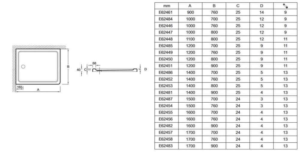Поддон Jacob Delafon Flight 120 x 70 x 4 см, E62485-00