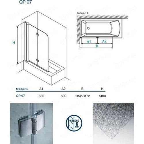 Koller Pool Waterfall Line QP97L Шторка на ванну из двух элементов, grape