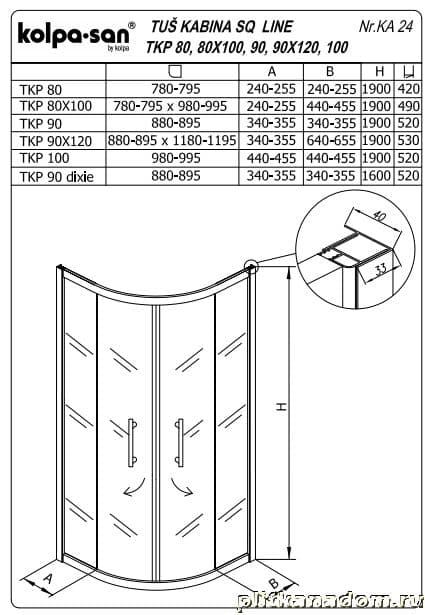 Kolpa Q line TKP Ассиметричный душевой уголок, правый 120x90