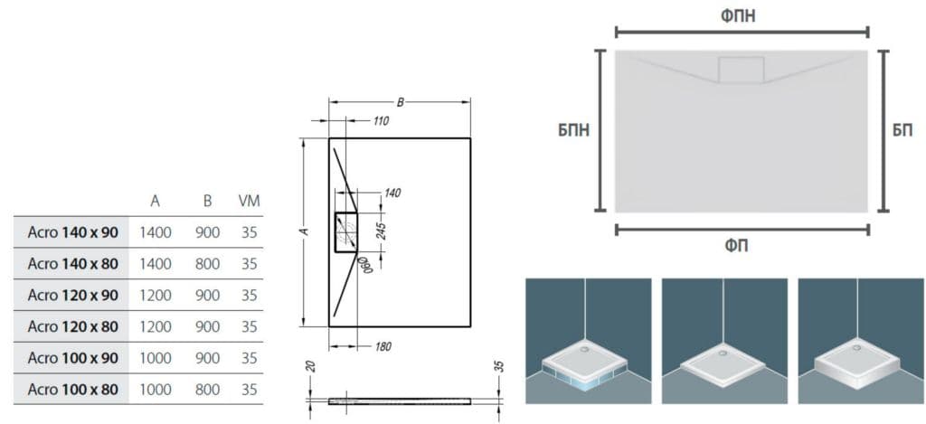 Kolpa San Acro Душевой поддон из литого мрамора 140х90