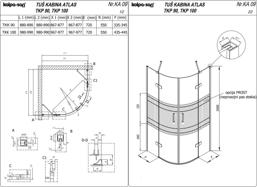 Kolpa San Atlas TKP 100 Душевой уголок полукруглый симметричный с распашными дверьми