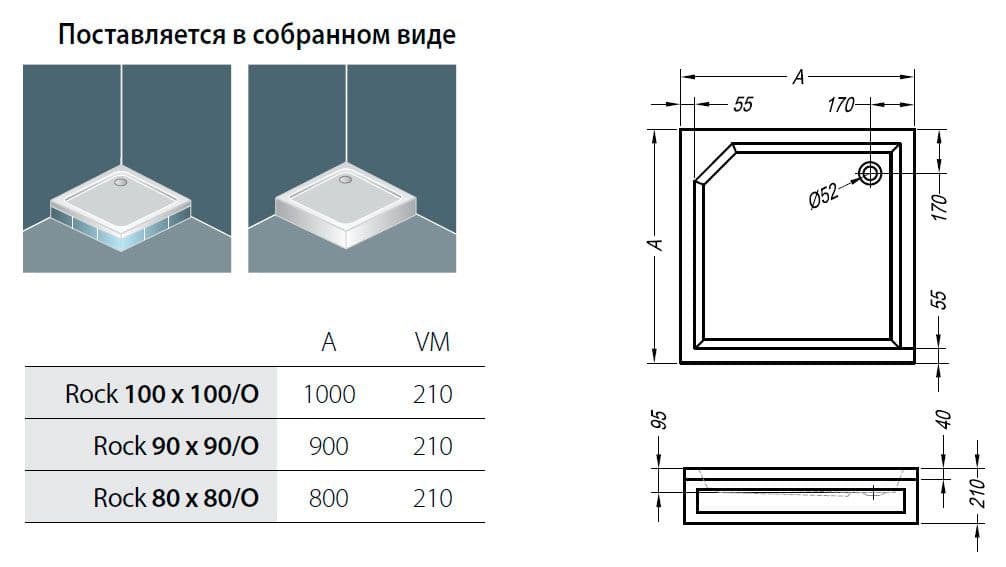 Kolpa San Rock 100 Душевой поддон с установленной декоративной панелью и ножками