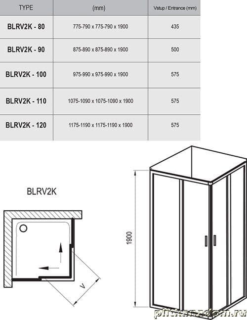 Ravak Blix BLRV2K-90 дверь для комбинации с дверью или стенкой блестящий, стекло Транспарент