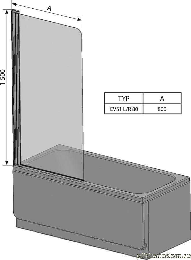Ravak Chrome CVS1-80 R блестящий, транспарент шторка На борт ванны одноэлементная