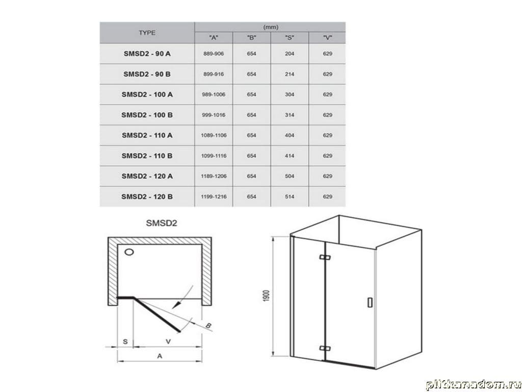 Ravak Smartline Душевая дверь 0SPABA00Z1 SMSD2-100 B-R хром + Транспарент