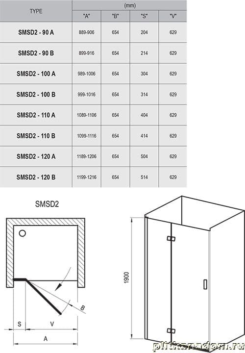 Ravak SmartLine SMSD2-90 B-R хром,транспарент, душевая дверь