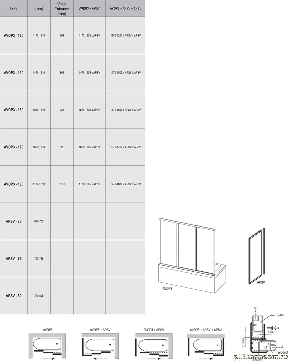 Ravak Supernova AVDP3-170 белая, транспарент, ванная дверь раздвижная, трехэлементная