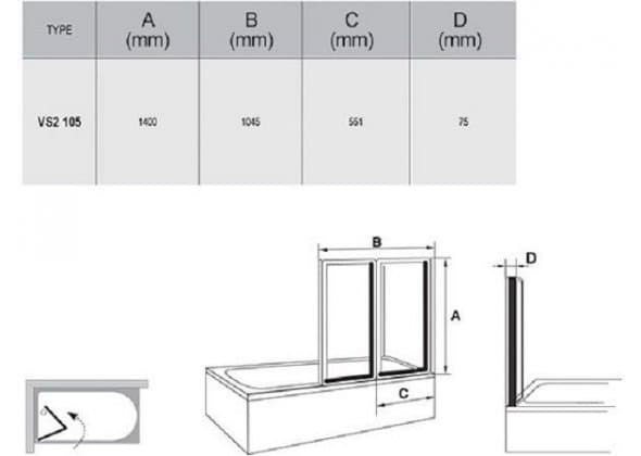 Шторка для ванны Ravak Supernova VS2 105 796M0U00ZG