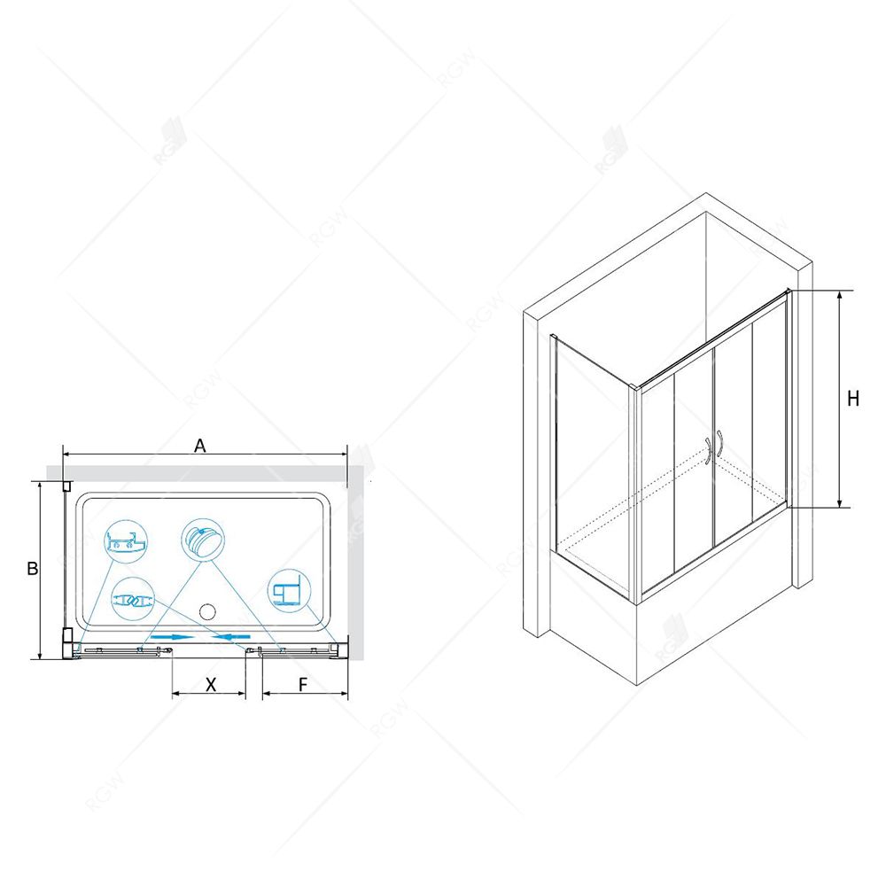 RGW Screens RGW SC-91 01119158-11 Шторка для ванны раздвижная с боковым элементом Z-52 150х80х150