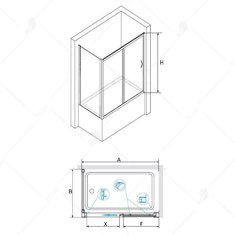 RGW Screens RGW SC-92 011192875-11 Шторка для ванны раздвижная двустворчатая с боковым элементом Z-52 180х75х150
