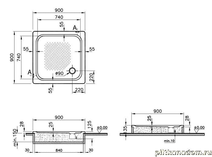 Vitra Generic 3,5 Steel 5700860 Душевой поддон H-2,5 Body+SYP 90x90