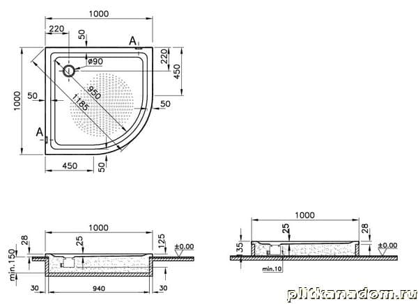 Vitra Generic Corner 3,5 Steel 5700863 Душевой поддон H-2,5+SYP 100x100
