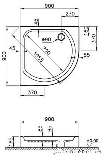 Vitra Monobloc Corner 51240001000 Душевой поддон 90x90