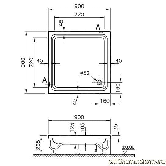 Vitra Optima 51900001000 Душевой поддон 90х90, установка с ножками и панелями