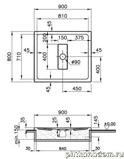 Vitra Slim 57730028000 Душевой поддон Flat Export Body+AC 90x80