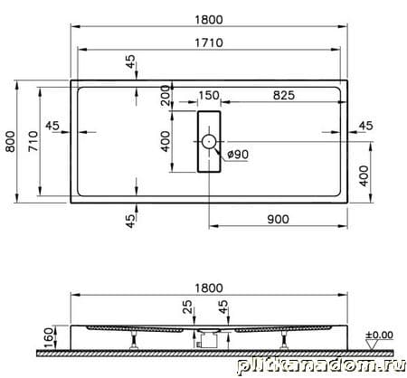 Vitra Slim 57830028000 Душевой поддон моноблок+AC 180x80