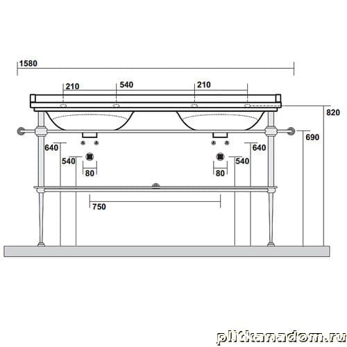Kerasan Waldorf 9195K2oro Металлическая структура для раковины 150, со стеклянной полочкой, золото