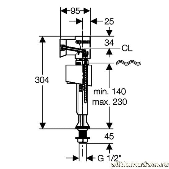 Geberit Impuls Basic 340, 136.726.00.1 впускной клапан, подвод воды снизу (запасной)