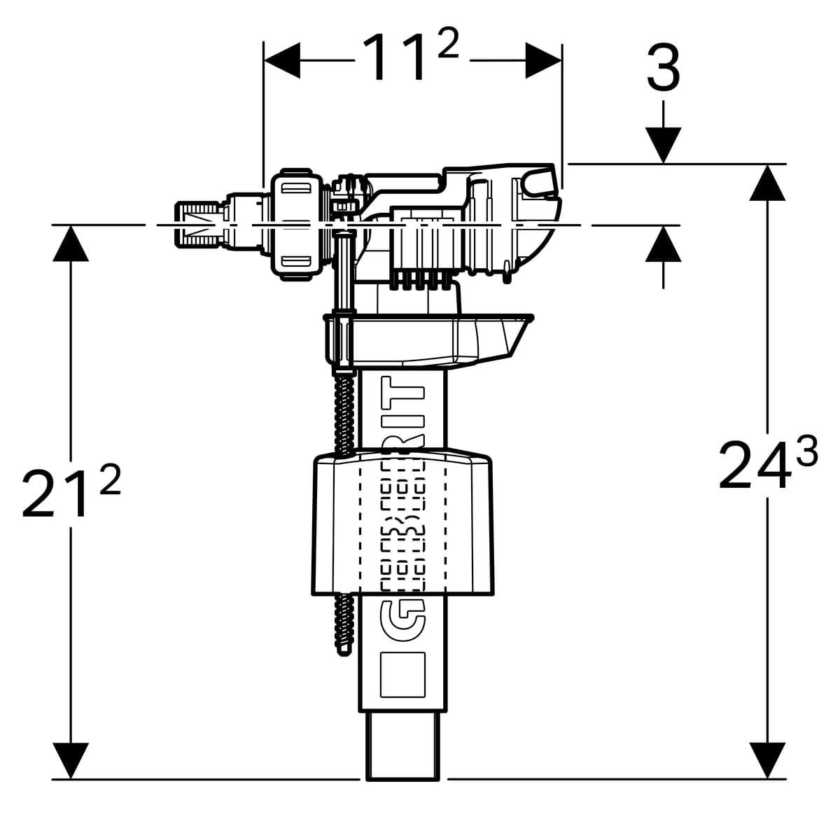 Geberit Тип 380 243.884.00.1 Впускной клапан, подвод воды сбоку, 3/8", ниппель из латуни