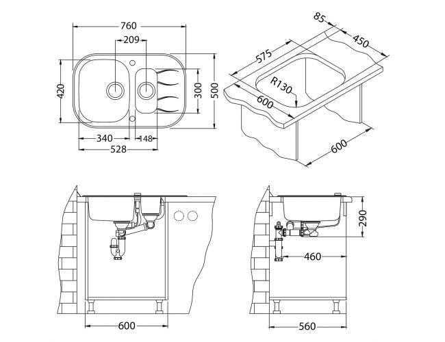 Alveus Wave 1102728 Кухонная мойка 76x50