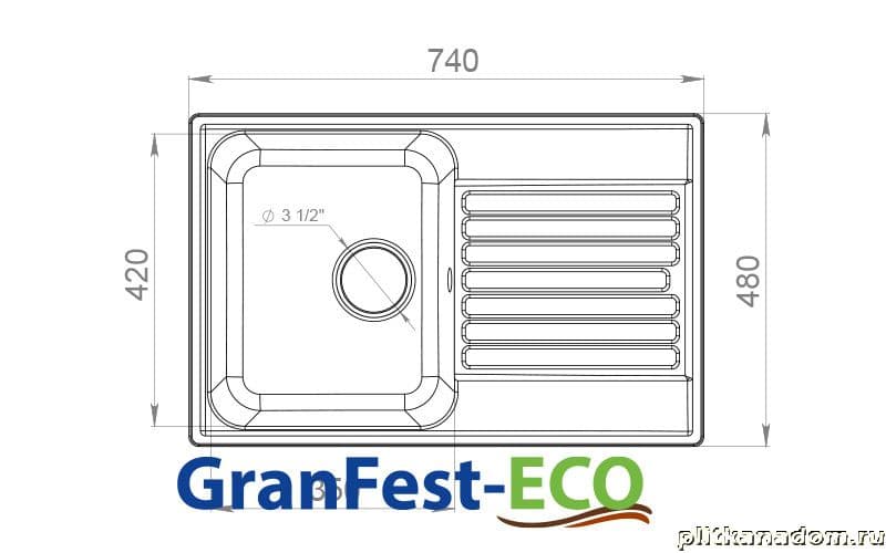 GranFest Eco-78 Композитная кухонная мойка 74х48, серый