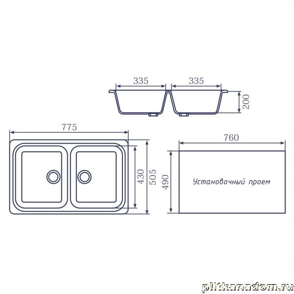 Mixline ML-GM23 (342) Кухонная мойка двухчашевая 50,5х77,5, графит