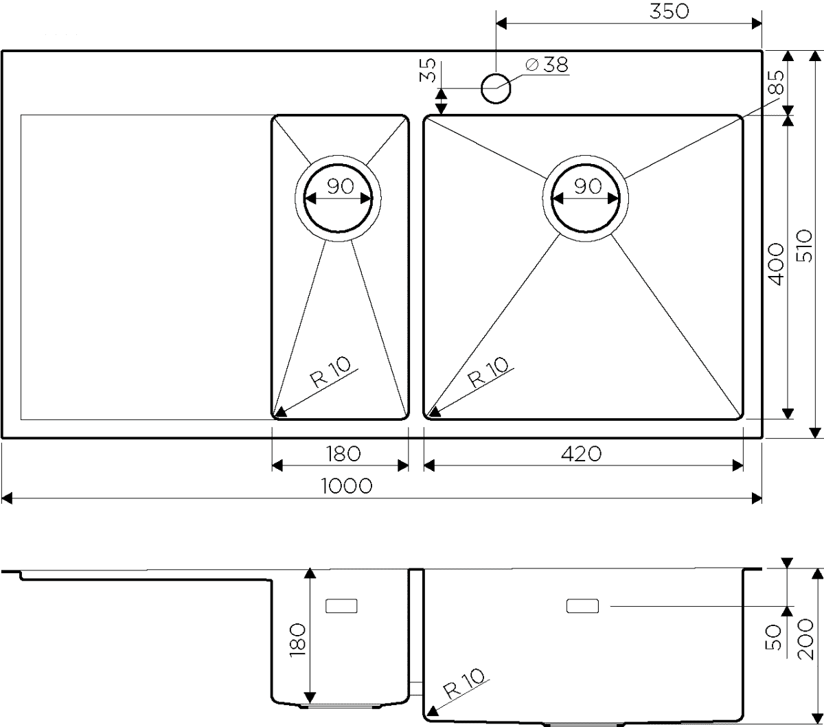 Мойка Omoikiri Akisame 100-2-GM-R нерж.сталь/вороненая сталь