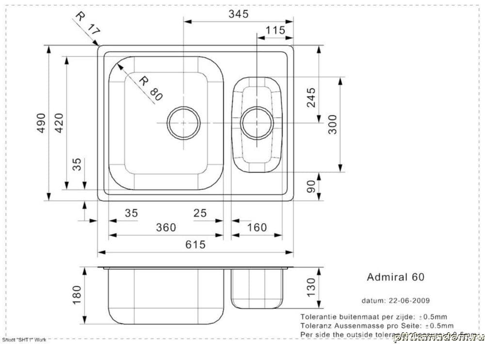 Reginox Admiral 60 L Кухонная мойка 61,5х49, полированная сталь
