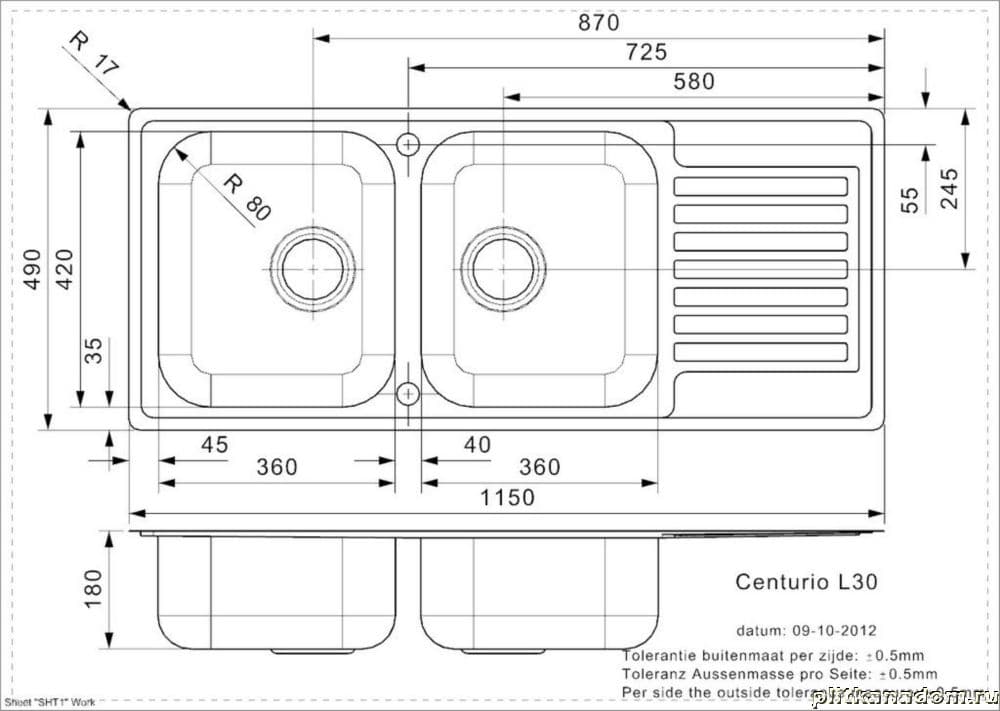 Reginox Centurio 30 Кухонная мойка 116х50, Lux