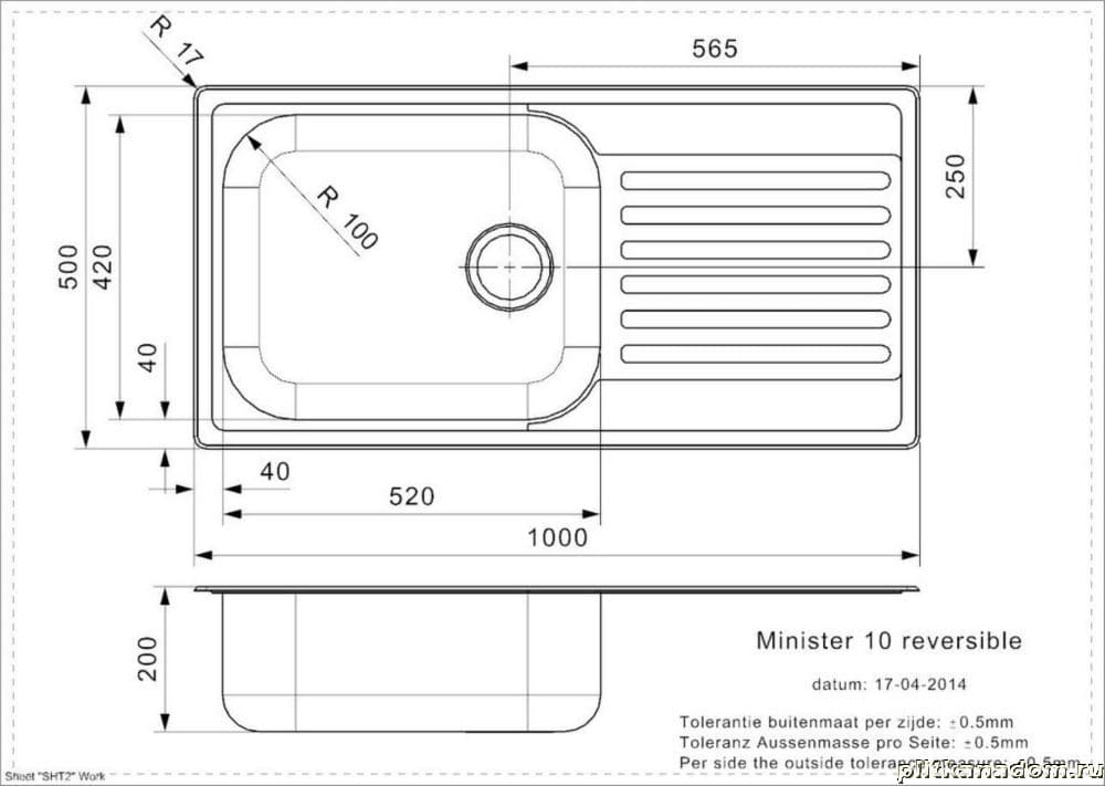 Reginox Minister 10 Кухонная мойка 100х50, Lux, левая