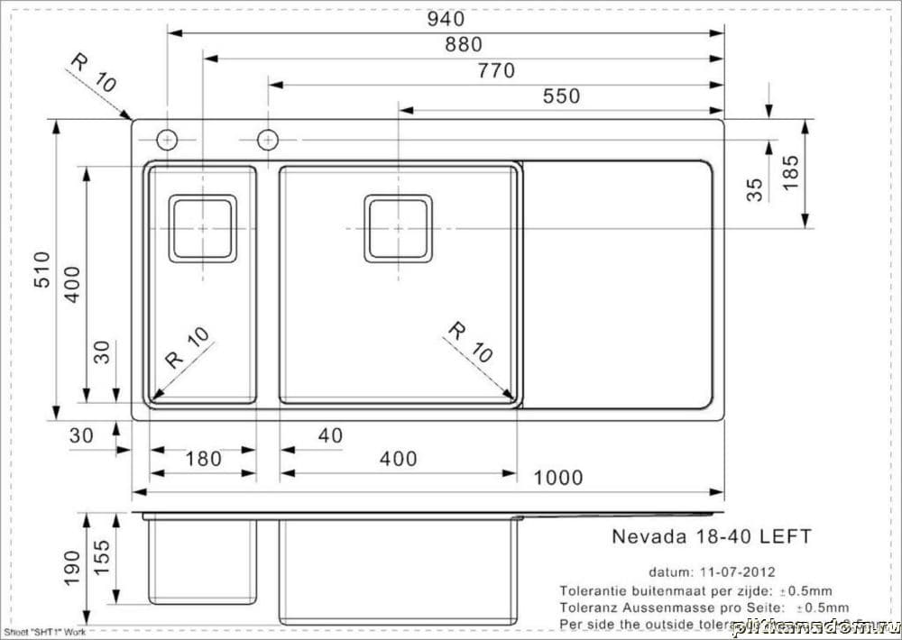 Reginox Nevada L 18x40 Кухонная мойка 100х51, левая, брашированная сталь