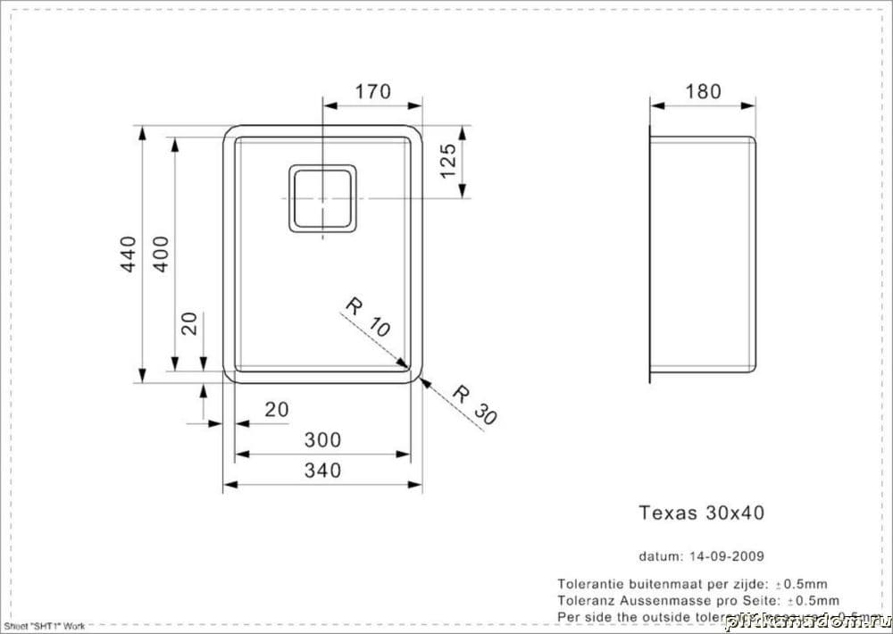 Reginox Texas L Кухонная мойка 34х44