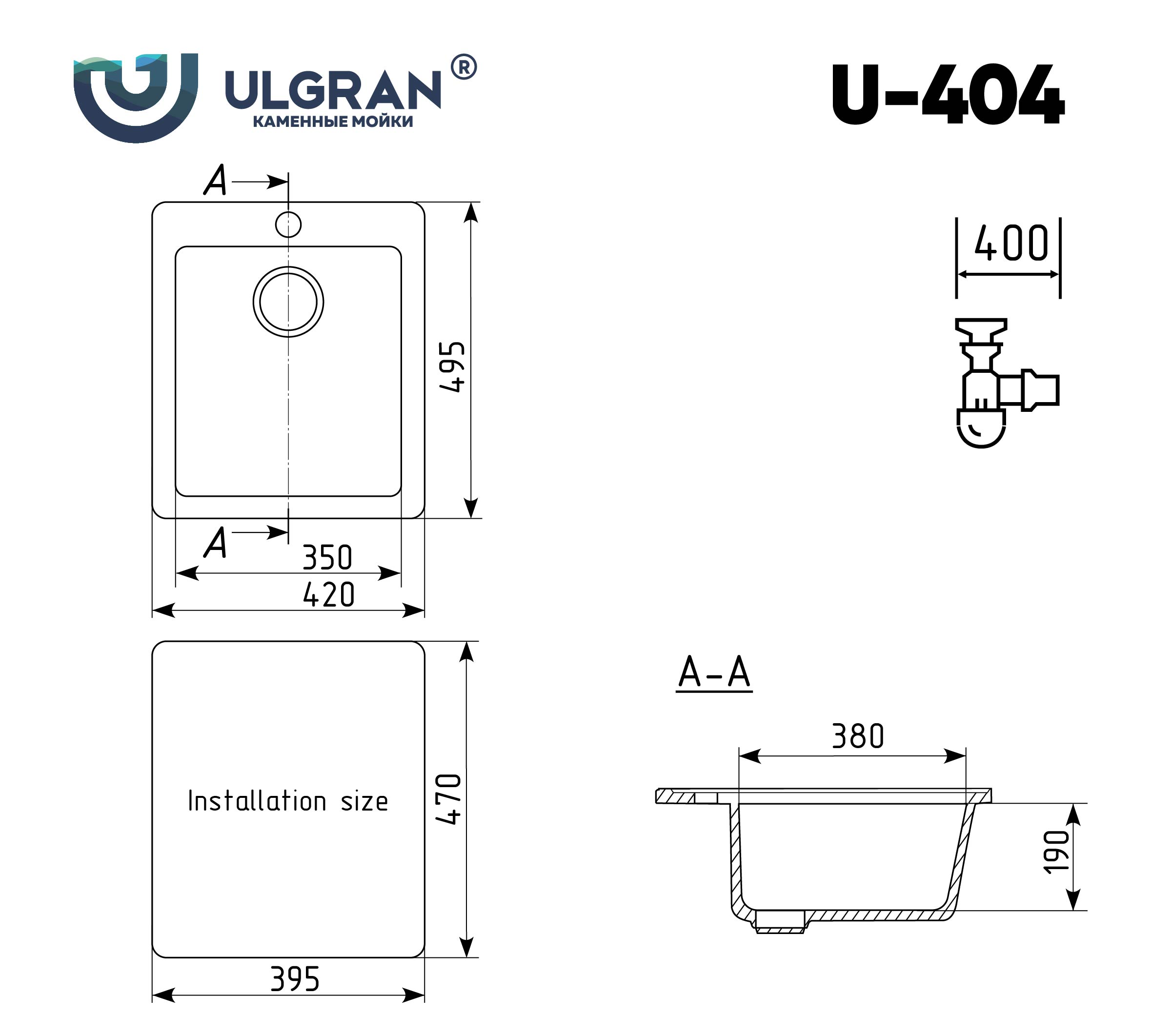 Ulgran U-404-308, черный Мойка кухонная 50х21