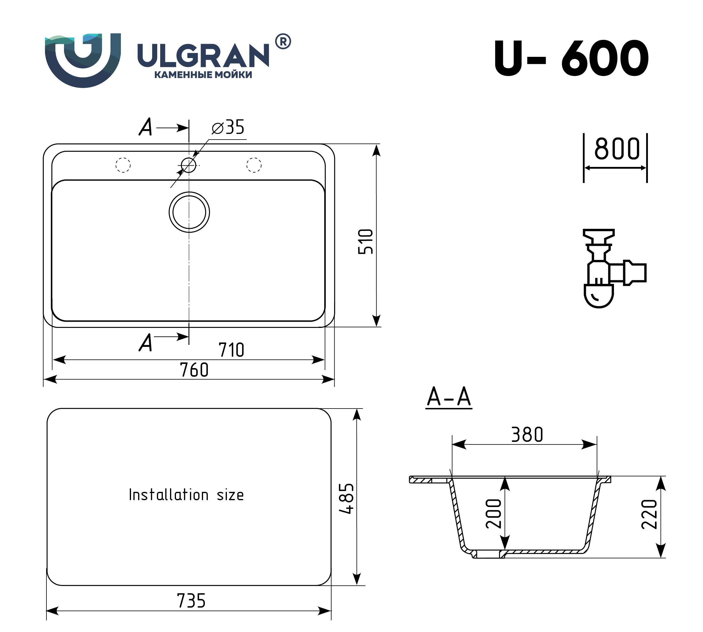Ulgran U-600-307, терракот Мойка кухонная 51х22