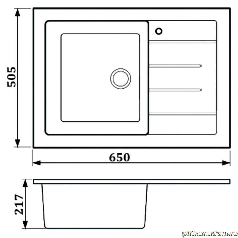 Whinstone Мунго 650 Рива B10 Кухонная мойка, серый