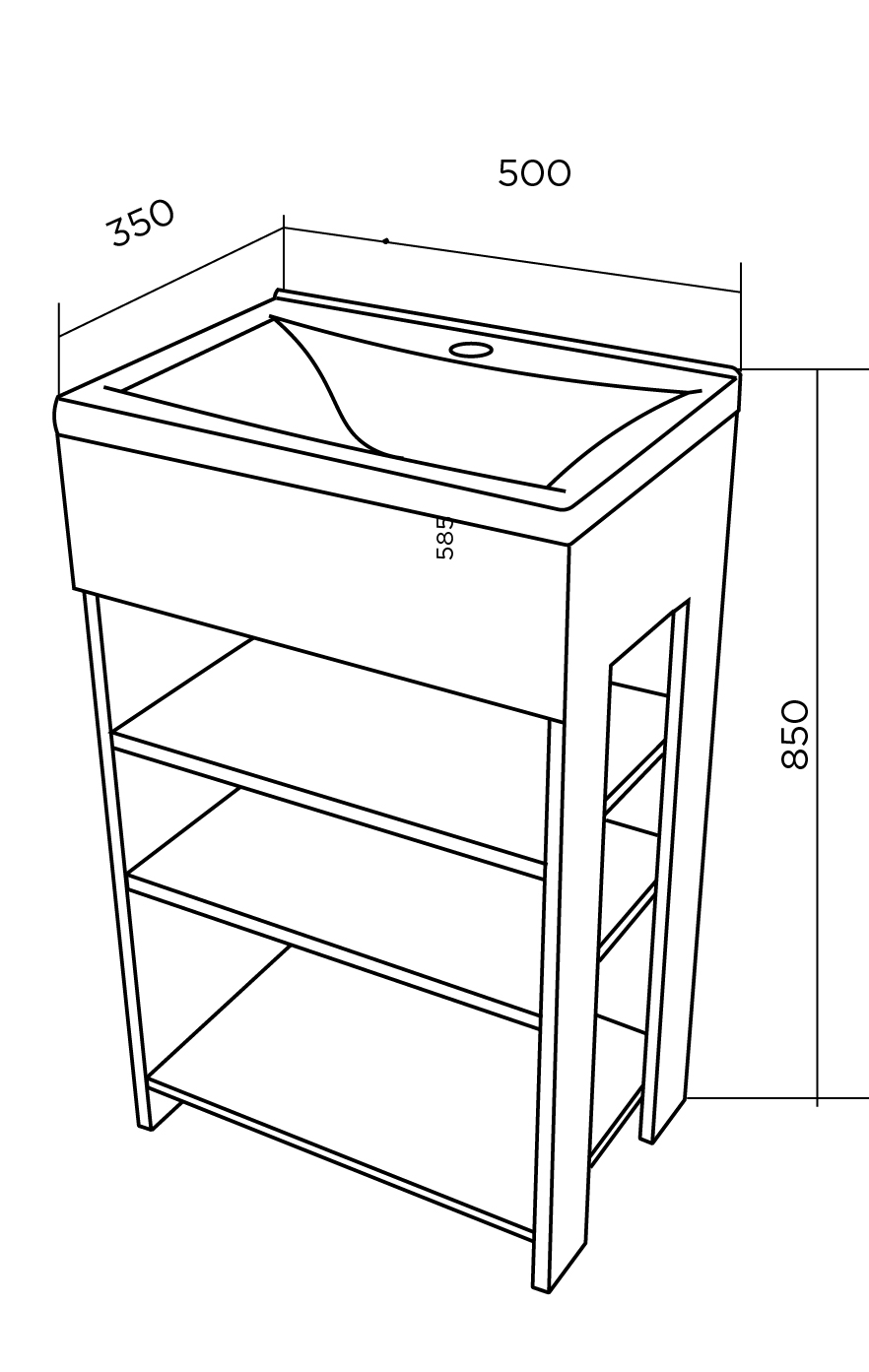 1Marka Тумба с раковиной Revo 50Н 3 полки Дуб Сонома