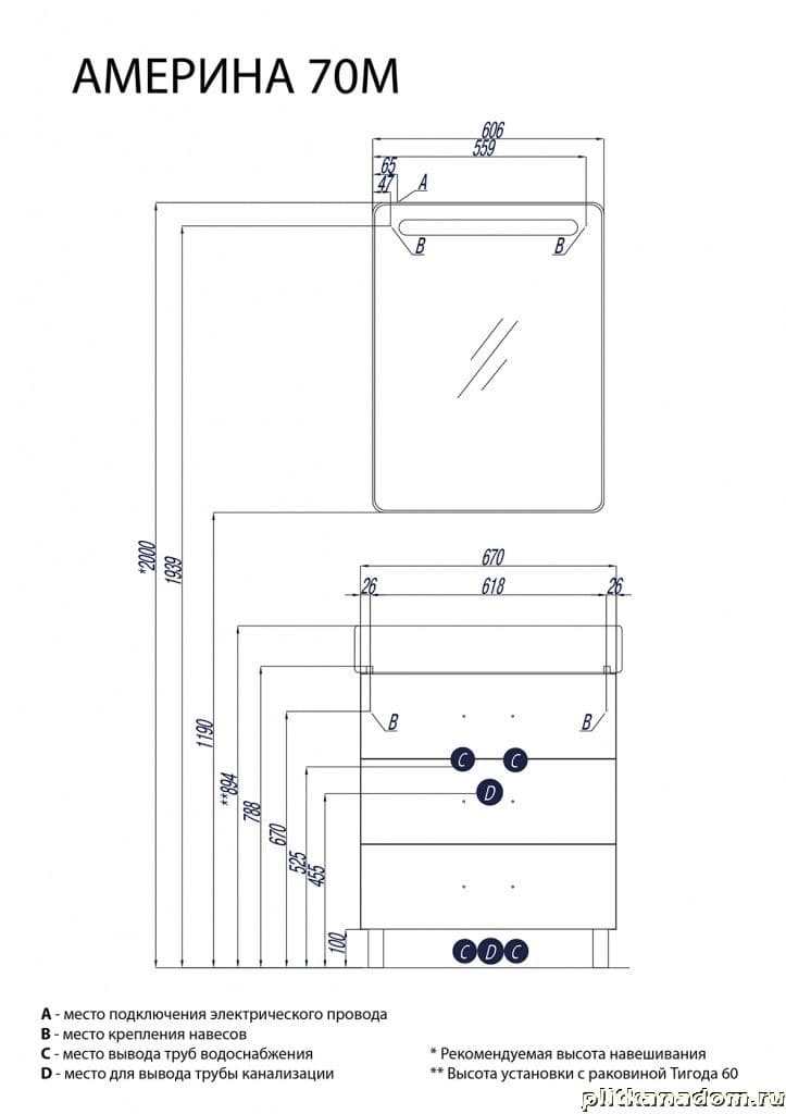 Акватон Америна 70 М 1A169001AM430 Тумба-умывальник, темно-коричневая