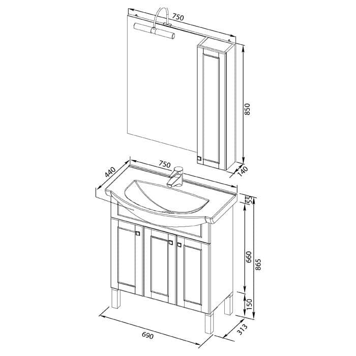 Комплект мебели для ванной Aquanet Честер 75 белый/золото