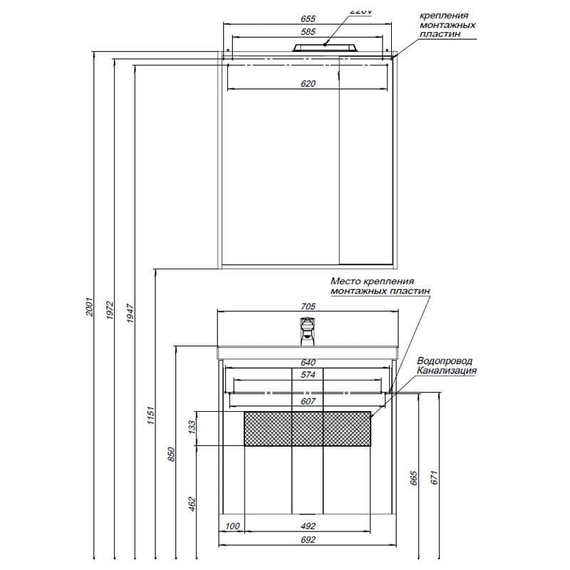 Комплект мебели для ванной Aquanet Клио 70 эвкалипт мистери/белый
