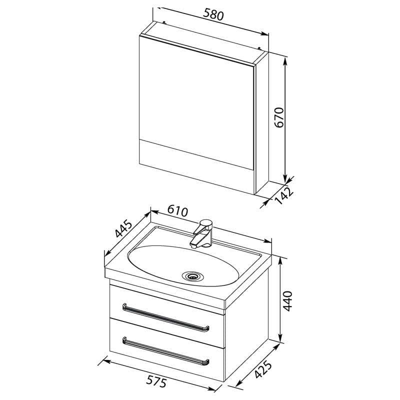 Комплект мебели для ванной Aquanet Сиена 60 белый (подвесной 2 ящика)