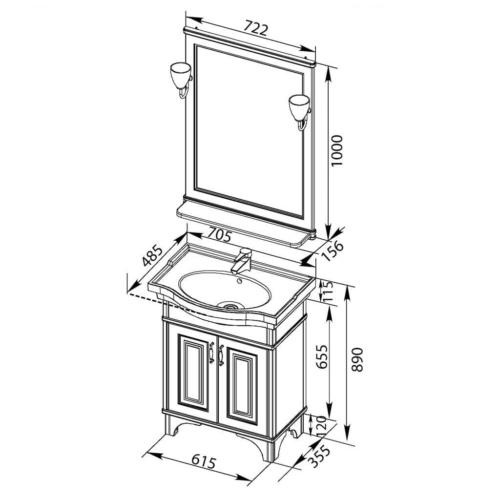 Комплект мебели для ванной Aquanet Валенса 70 белый краколет/серебро