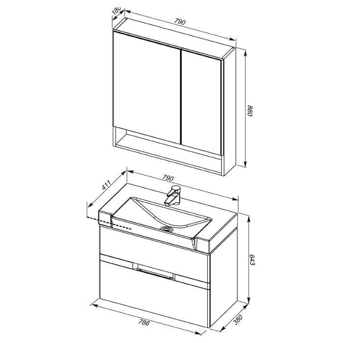 Комплект мебели для ванной Aquanet Виго 80 белый