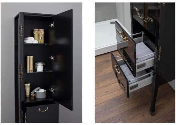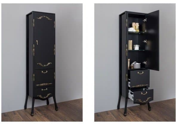 Шкаф-пенал для ванной Aquanet Виктория 40 черный/золото
