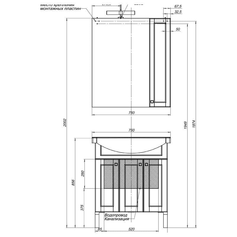 Тумба с раковиной Aquanet Честер 75 белый/золото