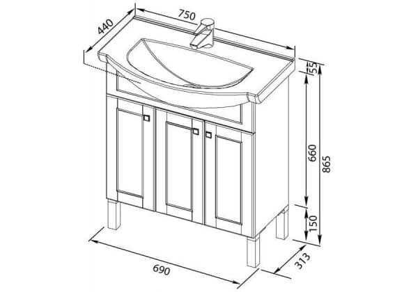 Тумба с раковиной Aquanet Честер 75 черный/серебро