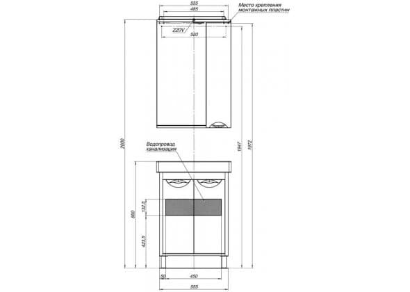 Тумба с раковиной Aquanet Гретта 60 New белый (2 дверцы)