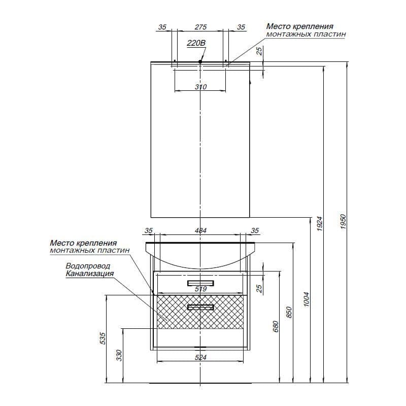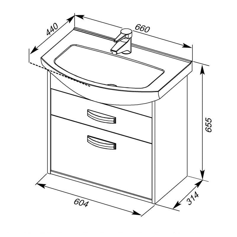 Тумба с раковиной Aquanet Грейс 65 дуб сонома/белый (2 ящика)